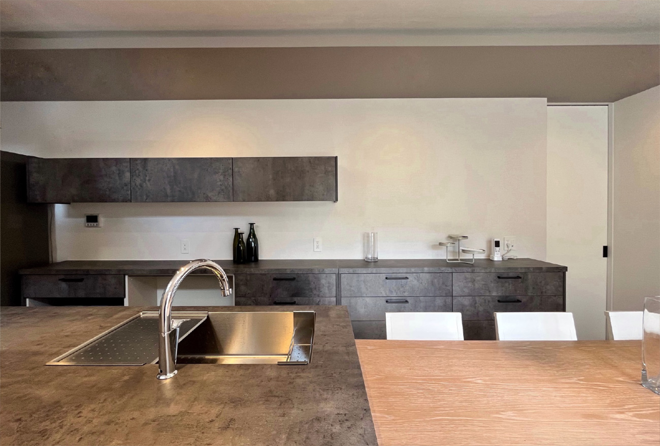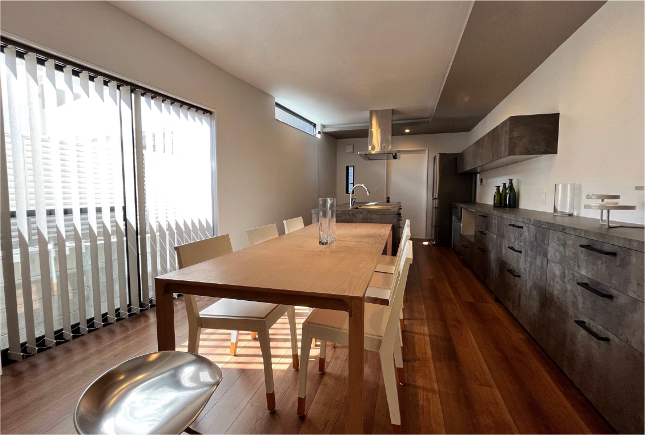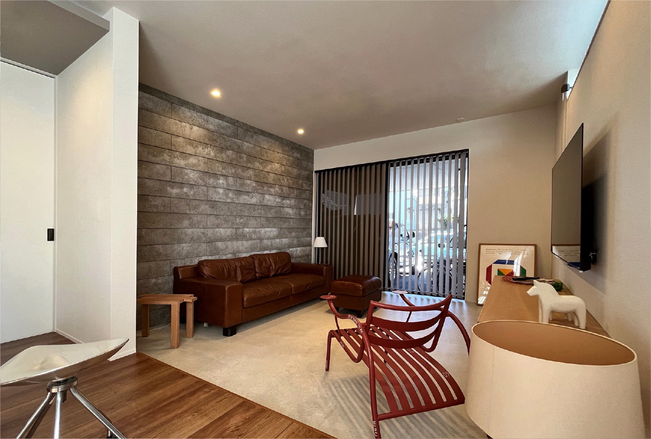 今の時代が求めるマーケットニーズを反映し、高品質でデザイン性に優れた新しいコンセプトの建物へと生まれ変わらせる新しい収益形態の開発です。市況やエリア特性に合わせて用途を変更するリノベーション・コンバージョン手法で、物件の新たな可能性を見出します。SOHO型セットアップオフィス(オフィス兼住宅で在宅勤務仕様、サードプレイスオフィスにも対応出来るデザインへ改修)にリノベーションした築25年の中古住宅です。主に接客スペース、応接室、ラウンジスペースなどの内装とそれに付随した基本的な什器備品を用意しています。小さなオフィスや自宅を仕事場とする働き方を想定して作られており、中古住宅+オフィス空間を「これからの働き方・住まい方」をベースに再定義したデザインが特徴です。