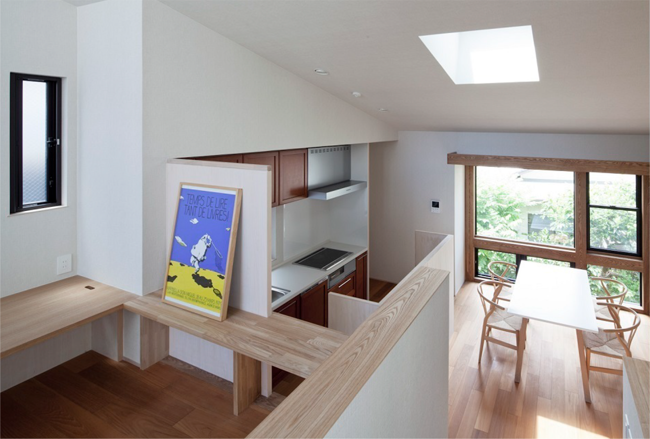 都心に住みながらも周辺の喧騒を忘れ、ゆっくりとした静かな時間が流れる、そんな居場所ができました。プライバシーを守りながら外部とつながる設計と、スキップフロアを用いて空間を最大限に利用した、変化とリズムのある空間が特徴です。その他にもソーホー利用も可能な構成や、屋上バルコニーの設置、家の中を離れの様な動線でアプローチするベッドルーム等、豊かで楽しい要素をたくさん詰め込みました。