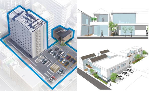 低稼働アパートを含む、街中の不整形地を開発手法を用いて有効利用