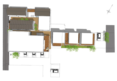 次に不動産事業を次世代の家業としたいという後継者の息子さんの希望もあり、お客様が所有する土地に、低層住宅を核とし、店舗・飲食・オフィス・簡易宿泊所まで幅広く利用・転用可能な建築物を建てるという企画を提案しました。