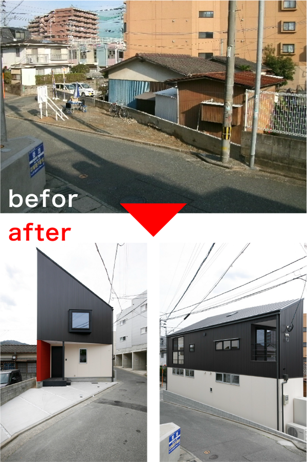 整形な四角形の土地というものは、なかなかありません。(整形かどうかということは、本当はあまり重要では有りません)整った四角い土地も良いですが、傾斜地や隙間立地は取得コスト面での恩恵を受けられるだけでなく、個性的な住宅を建築することができますので、プランによっては理想的な住まいを得ることができます。当然デメリットもございますので、ライフスタイルの中で許容範囲を取捨選択すると良いでしょう。