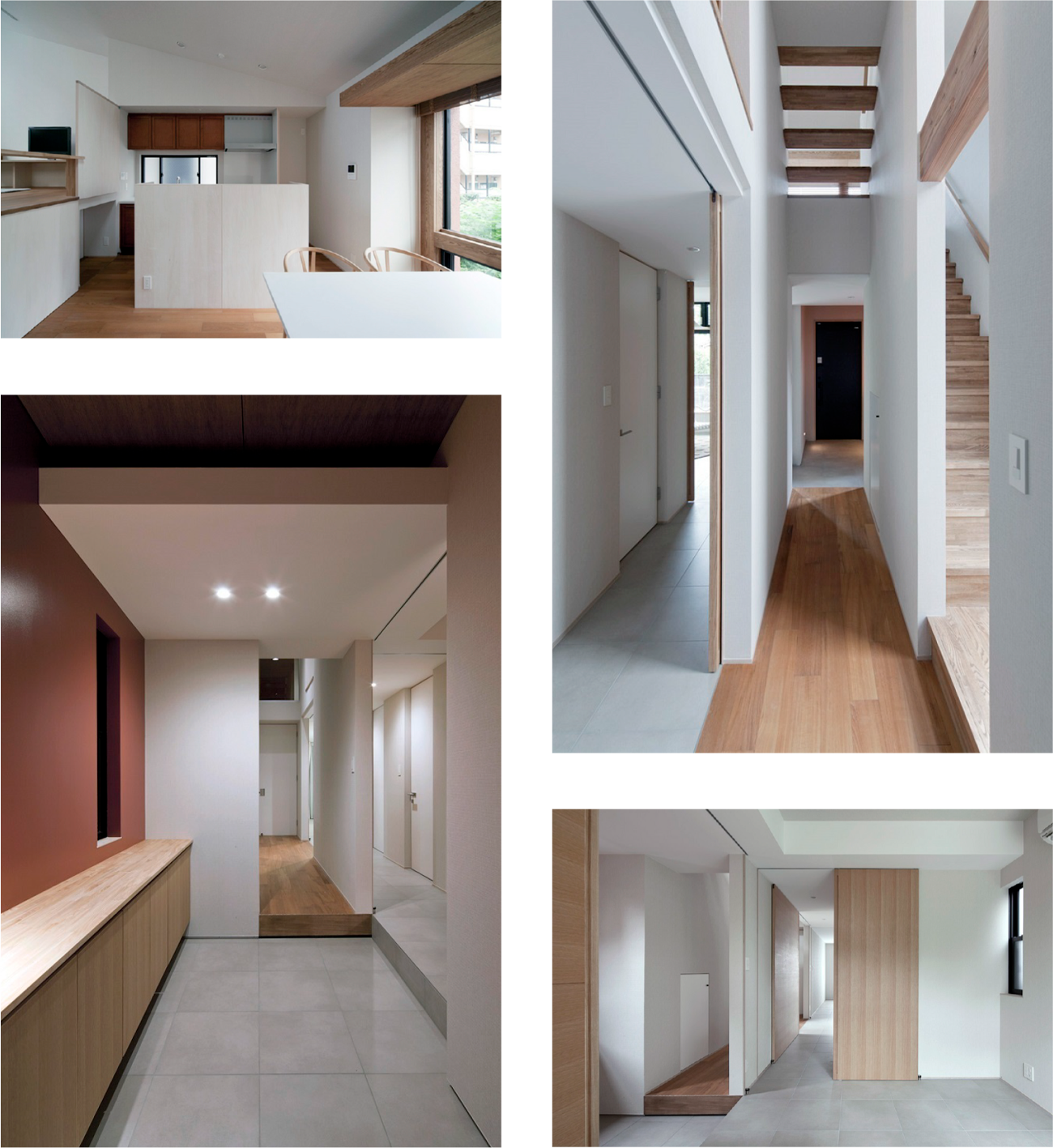都心に住みながらも周辺の喧騒を忘れ、ゆっくりとした静かな時間が流れる、そんな居場所ができました。プライバシーを守りながら外部とつながる設計と、スキップフロアを用いて空間を最大限に利用した、変化とリズムのある空間が特徴です。その他にもソーホー利用も可能な構成や、屋上バルコニーの設置、家の中を離れの様な動線でアプローチするベッドルーム等、豊かで楽しい要素をたくさん詰め込みました。