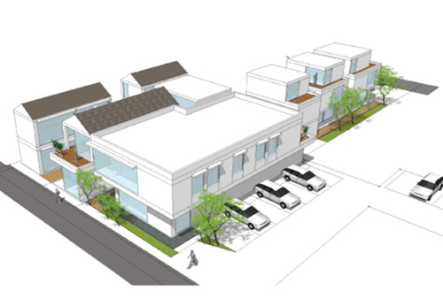 次に不動産事業を次世代の家業としたいという後継者の息子さんの希望もあり、お客様が所有する土地に、低層住宅を核とし、店舗・飲食・オフィス・簡易宿泊所まで幅広く利用・転用可能な建築物を建てるという企画を提案しました。